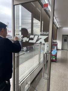 最終日の今日は、朝から入口ドアの新しいステッカー貼りを👍