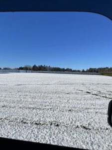 途中、畑は一面真っ白
