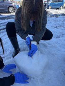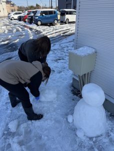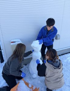 雪だるまの後ろで数人が…