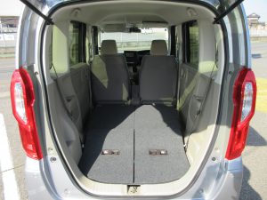 N-BOXは特に天井も高く、後部座席は取っ手一つで簡単にフラットにできるだけでなく、縦にシートを上げることもでき