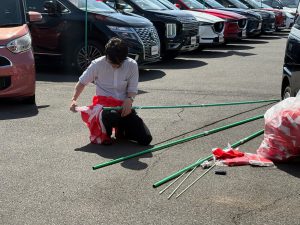 手際よく古い旗🚩を外し、付け替え