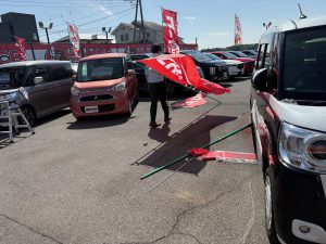 颯爽と旗🚩を持って歩く店長!!!